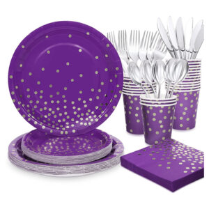 175 Pcs Purple Party Plates Decorations Purple Sliver Party Supplies