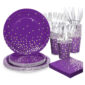 175 Pcs Purple Party Plates Decorations Purple Sliver Party Supplies